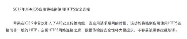 大家都知道,苹果公司强制所有App在2017年1月1日前使用HTTPS加密,否则Apple Store中的APP将不能再被下载使用。