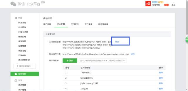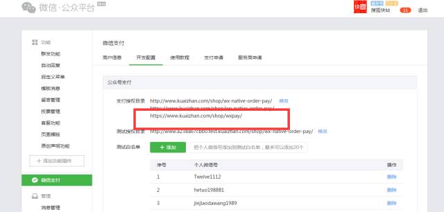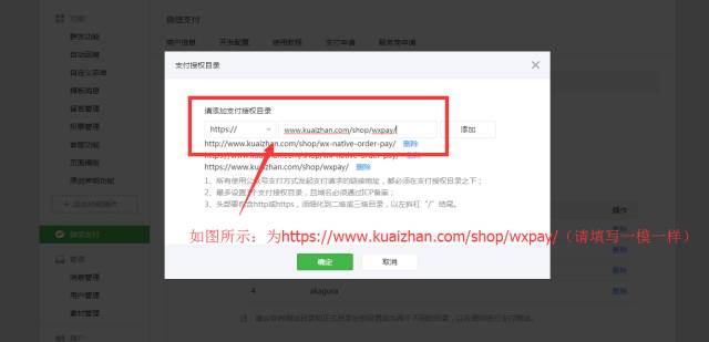 因此,快站整体业务已完成http向https的迁移。 迁移原因是: 一、科技界大佬的大腿是必须要抱的。 二、HTTPS是以安全为目标的HTTP安全版,对用户的隐私保护和网站的安全稳定很有必要。 三、快站哥只想发现并满足你们的需求。 大部分功能都已通过后台设置实现了自动跳转。 但在电商功能中,由于微信自营支付属于第三方平台,所以在微信支付时还会出现问题。 因此,还请站长们根据图文教程自主修改下。 第一步 在微信公众平台后台选择“微信支付”,“开发配置”,点击修改支付授权目录。 第二步 添加支付授权目录时选择“https://” 第三步 填写域名www.kuaizhan.com/shop/wxpay/(请填写一模一样) 第四步 添加后点击确定,新增加https://www.kuaizhan.com/shop/wxpay/ ,如图所示,其他不需要更改。 这样问题就解决了~接下来你等着收钱就好。 支付宝自营支付不受影响(理由哥并不知道),大家放心使用。