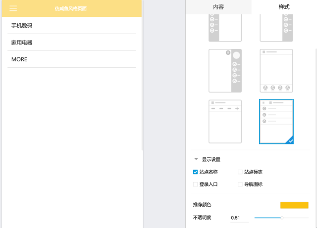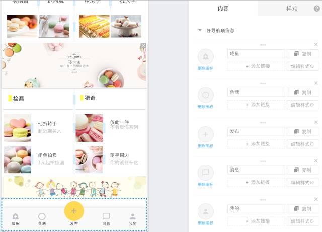 快站中提供的导航样式很多,恰好有与咸鱼相同的样式。并且,可以在样式中根据导航名称选择适合的图标。