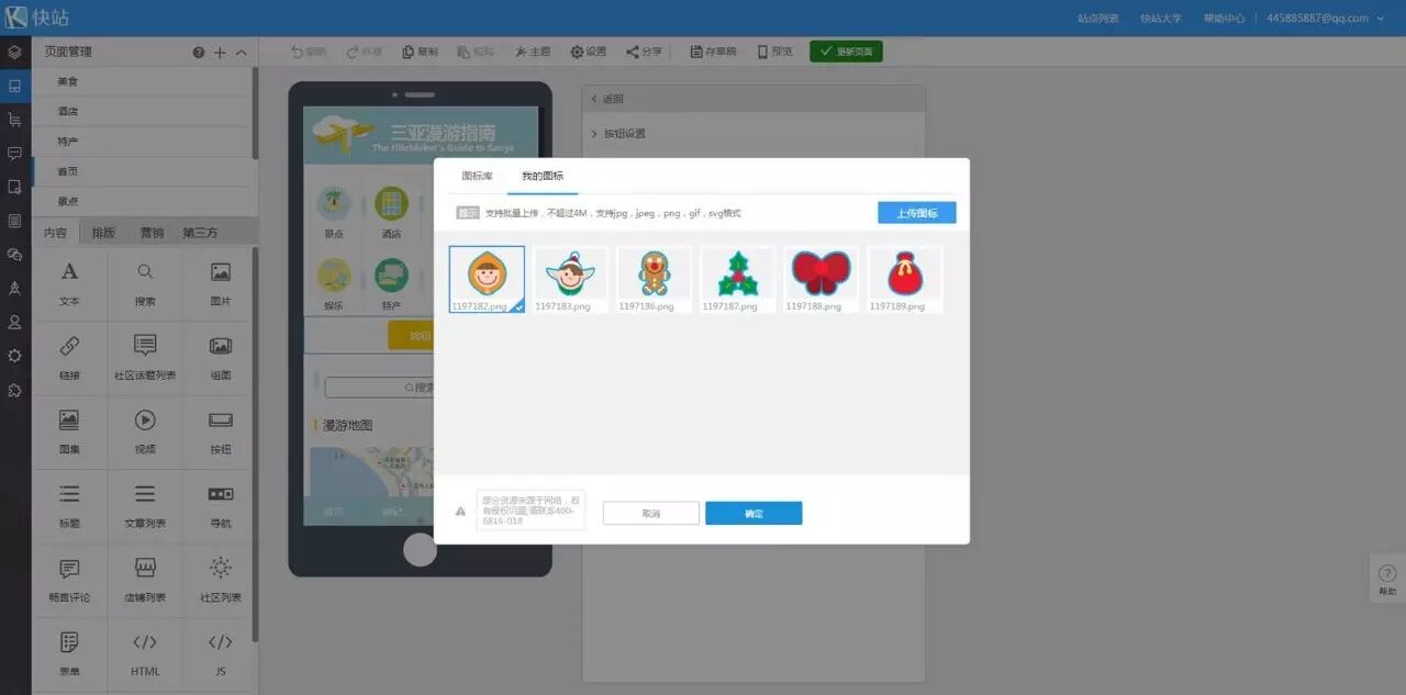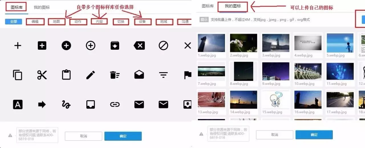 二、【图标设置中资源丰富的样式库和上传图标功能】