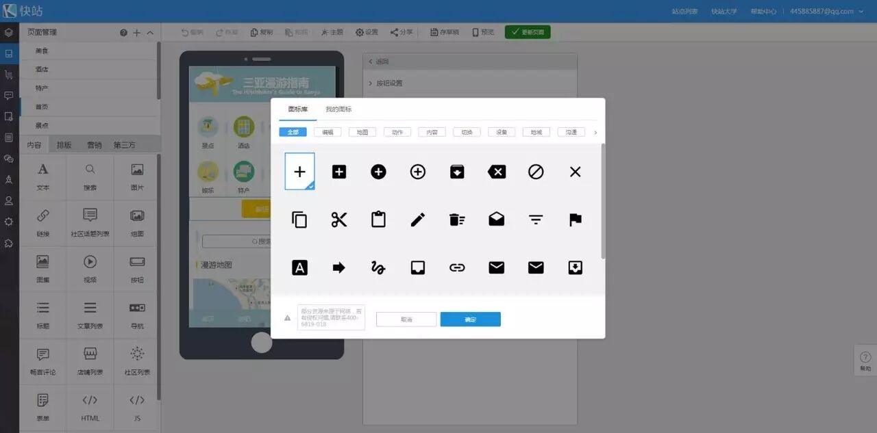 3,如果站长找不到自己想要的图标,点击加号添加图标。打开图标库,还可以点击我的图标上传自己的图案。