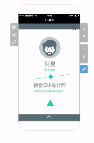 你要是受不了图文的冷静,觉得还是太低调,那就直接选行走的颜值担当——快海报。页面的活泼灵动让hr眼前一亮,你能说的其实更多。