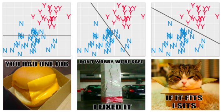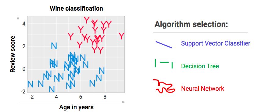 那些煞有介事的算法名称只不过是告诉你,你的数据集中将会使用什么形状的边界。如果你是一个应用机器学习的爱好者,不死记硬背也没关系——实际上,你只需要通过尽可能多的算法把你的数据塞进去,然后迭代那些看起来可能有效果的东西。好不好吃还得尝尝才知道,所以开始享用吧。