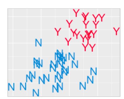 但是你打算怎样画这条线呢?我想,你肯定知道,一条简单的直线不会是最佳的解决方案。我们的目标是把 Y 和 N 分开,而不是为了画线而画。