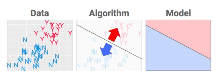 下面我们来看看机器学习是如何工作的:机器学习使用数据中的模式来标记事物。听起来不可思议? 它的核心概念实际上非常简单。我说“非常”是因为如果有人觉得它很神秘,是因为他们应该还没有完全理解它。