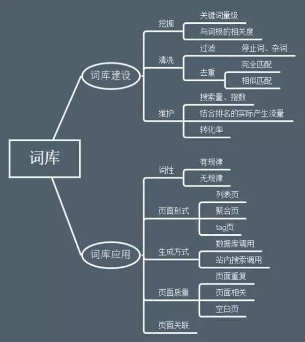 搜索需求覆盖率的整个过程就是搭建一个强大词库并制作成相关网页的过程,在网上有很多帖子有讲到这点,我就分享一张当时参加培训时的“词库搭建图”。